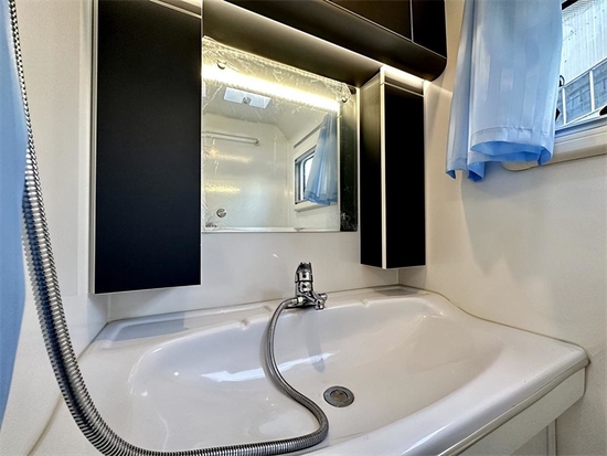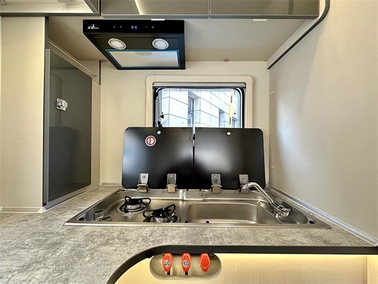 览众房车预见不久的将来,房车的厨房区设计也注定要做出改变,不会再像目前大多数外置厨房那样“尴尬”的暴露在众人面前。为此“自由炮”在生活区大胆地设计了超大的厨房,符合年轻人的需求,相信也是未来房车环境的大势所趋。不得不说,拥有超大料理台面和独立的操作空间的厨房区真的很有家的感觉。配备了电磁炉、洗菜池、抽油烟机、微波炉、冰箱等,做饭十分方便。操作台下方为分层储物柜与顶部储物柜配合使用,可以用来存储厨具等物品。洗菜池池下方通向尾部660L贯通式行李舱,左右通透,在卫浴间、厨房和外部左右两侧舱门处均可拿取物品,旅行生活所需物品,统统都可以放在这里。而在储物舱下方还配备了外置灶具,不仅仅室内厨房可以做饭,好天气我们还可以在室外烹饪美食。