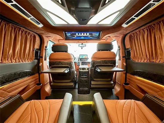 商务舱中央两个超级豪华的航空座椅,共有10多项的电子主动调节,还带有腿托通风加热按摩等各种舒适配置。二排的空间可以说是豪华商务的标配,想要车内整洁,安装磨砂地板是重要环节。极具创意的机甲系高达 三色灯光,让您可以根据使用环境进行氛围调节。--180++1775++1185