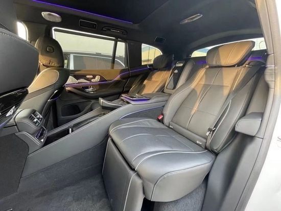 23款奔驰迈巴赫GLS600现车车身长度目前GLS600是5205mm,轴距是3135mm,但入华以后根据奔驰一贯的特性,显然还有加长轴距的可能性。车内采用4座或5座布局,而商用显然4座的后排才更加舒适。4座版本除了有超大扶手以外,座椅相对来说还要更为靠后一点,能够支持电动调节并配备腿托,另外中间扶手上有控制台和冰箱以及无线充电功能。 迈巴赫GLS600车身尺寸方面,迈巴赫GLS的车长为5205mm,轴距达3135mm。当车门打开时,车身会自动降低25毫米,镀铬电动伸缩行车侧踏板会在1秒内伸出,配合侧裙板上的LED灯带照明,可以给上下车的乘员提供满满的“仪式感”。)