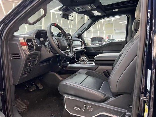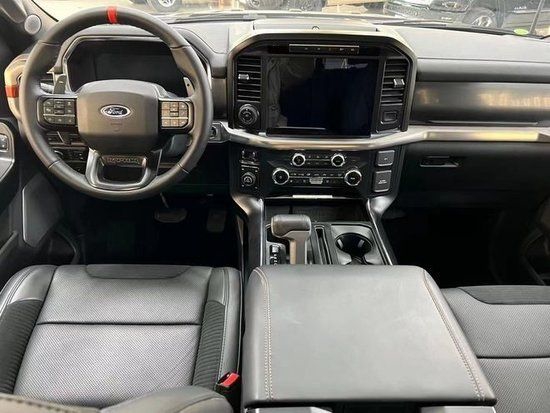 全新22款福特F150猛禽内饰采用独特的中控台和门饰板面漆和真皮包裹的方向盘。中控台部分辅以银色饰板装饰,六指针仪表盘的设计有些后工业时代的复古风格。采用带电冷热功能的可记忆式皮革座椅,头枕四向可调, 联系电话:彭经理:17720015375《同微信》搭配铝饰条和黑色钢琴烤漆内饰可电动升降的后窗带隔板和电热除霜功能。