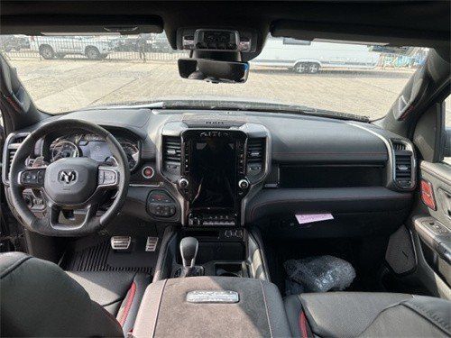 2023款道奇公羊霸王龙在内饰部分进一步强化了其高性能版本的形象,中控台和座椅随处可见的TRX标识便是最好的例证。同时,作为道奇家族的旗舰车型,新车还配备了12英寸竖置中控屏幕,除了支持蓝牙、导航和车载Wi-Fi等常见功能,还支持Apple CarPlay和Android Auto手机映射。