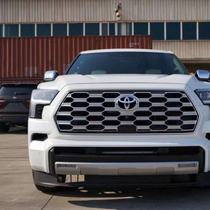 全新一代23款丰田红杉的前脸看起来和坦途基本一样,特别是大尺寸的横向进气格栅以及两侧的L形大灯组,不过格栅和下包围并未像坦途那样是相连的,但却显得车头更加霸气,而且还增加了些层次感。此外,全新红杉还提供了另外两种前脸样式可选,包括蜂窝网状设计以及熏黑波浪形并搭配了“TOYOTA”标识的进气格栅造型。另外,车头上的雾灯组都设计在下方护板上,点亮后有很高的辨识度。