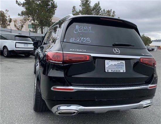 迈巴赫GLS600车尾方面,两条贯穿式的镀铬饰条搭配两段式的LED尾灯增加车尾的层次感,车尾的双边共四出的矩形排气管装饰件,排气管口被分隔成上下两层,同时,镀铬后护板展现其性能车特质。