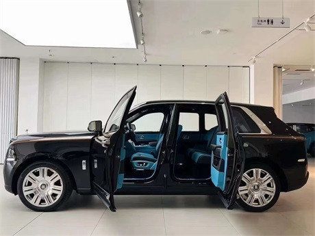 劳斯莱斯库里南内饰延续了全新幻影 (配置|询价)的设计风格,整体用料依旧一如既往的奢华高贵,中控采用大面积实木打造,配合方向盘上的实木点缀,既复古又豪华。中控屏幕尺寸为10.2英寸的屏幕,轻触车门把手上按键就可以电动关闭,四座版的后排控制台与前部是断开的,在狭窄环境停车后排乘客可以选择任意一侧下车。