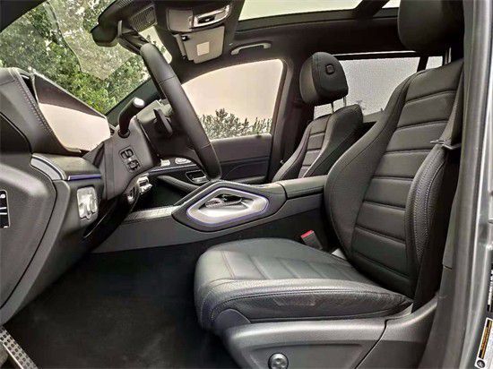 2022新款奔驰GLS450的内饰配了实木/皮革组合的多功能方向盘和带有三种颜色及亮度调节的环境氛围照明系统。车内为三排七座设计,所有座椅均由真皮打造。内饰还将有更多个性配色可供车主选择。