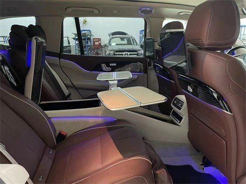 其中第二排独立座椅相比普通版GLS更加靠后,并且带有巨大的腿拖,其后排座椅最大倾斜角度大43.5度,后排腿部空间最大达1.34米。便捷式商务桌板,放置电脑、文件等物品。。。
