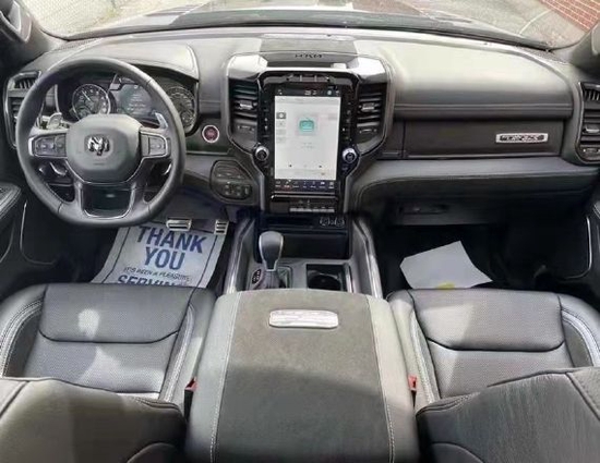 2022款道奇公羊霸王龙外观设计极具冲击感,前倾式车头,相较中规中矩的家族设计无疑多了几分对路面的侵袭感。车内氛围堪称豪华,绝对可以媲美高级轿车。眼神中没有透露出一丝的活泼神韵,唯一展现出来的只有凶狠。前杠是铁质前杠带拖钩,散发这金属气息,沉稳大气。