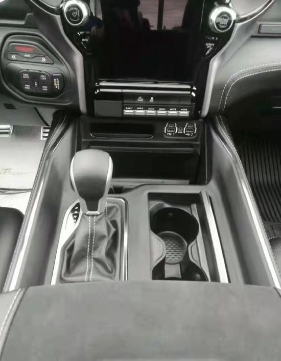 道奇公羊霸王龙在内部设计上还是延续了美式那种比较粗犷的风格,规整的中控台设计看上去比较死板,但丰富的配置会让你不由得为其称赞,中控台的设计简洁硬派,符合公羊的气质,仪表盘底边有花纹,则更加凸显了这款车的文雅性,软性材质的仪表台设计,摸上去手感非常舒服,并无些许生硬之处。