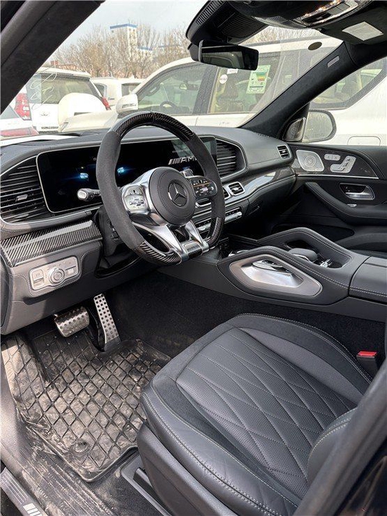 22款奔驰GLS63内饰设计非常豪华,AMG家族专属的镀铬金属方向盘质感不俗,双联屏的设计凸显了科技感,下部的四孔式出风口代表了GLS旗舰的地位,大量的真皮和碳纤维进行装饰,营造出浓郁的运动科技感。