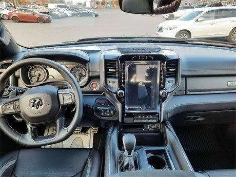 2023款道奇霸王龙中控台的设计简洁硬派,符合公羊的气质。仪表盘底边有花纹,则更加凸显了这款车的文雅性。软性材质的仪表台设计,摸上去手感非常舒服,并无些许生硬之处。