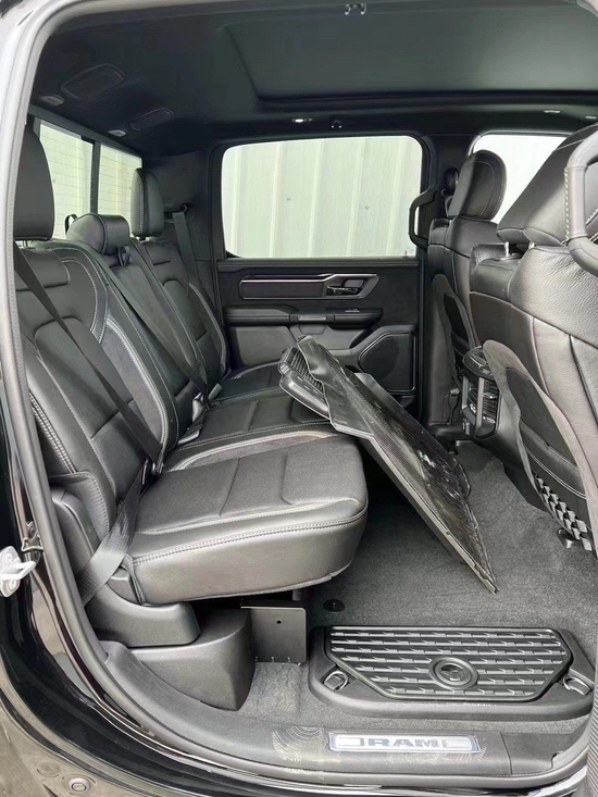 国六道奇公羊做工则完全摆脱了美式的粗糙感,边缘、接缝都处理的很精细。真皮座椅各自独立,配有加热、按摩等舒适功能,每个座椅独立配一个操控手柄,各项功能由乘坐者自己控制。道奇公羊皮卡车型全部座椅均采用真皮包裹,前排还配备了十分实用的运动座椅。