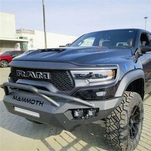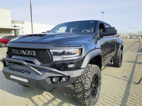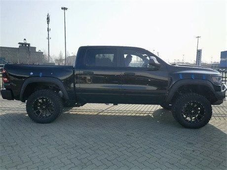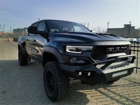2022款道奇公羊轩尼诗猛犸象新车进行了升高处理,采用定制的竞技前杠、配以20英寸防脱越野轮毂和35英寸的越野轮胎。动力搭载经过升级的6.2L机械增压发动机,最大可输出754kW,峰值扭矩1313N·m。