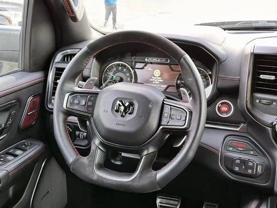 外观方面,新车传承了道奇Ram家族高大威猛的造型设计,同时细节部分融入了更多高性能元素,包括经过黑化处理的前格栅,引擎盖两侧的黑色进气口,以及为了容纳巨大的机械增压器而设计的通风口等等。