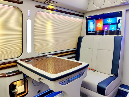丰田考斯特 (配置|询价)改装商务车隔音采用了进口环保双层隔音板,起到隔开底板噪音的、b发动机专用隔音材料,能够发动机对车内的噪音影响,董事长专用是高端商务的设计灵魂,丰田考斯特定制董事长专用版秉承让顾客感受超乎寻常的舒适感的宗旨,致力于的为每一位乘客营造更佳乘坐的舒适感和移动商务环境,丰田考斯特商务车长期以来是领导调研专用车