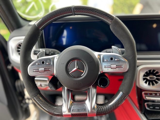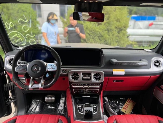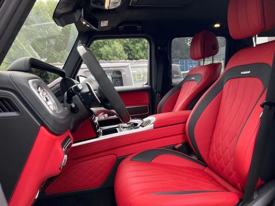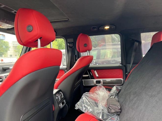 22款奔驰G63豪华精致的真皮包覆提供了足够的舒适性和支撑性,通风和加热功能让乘客免受高温和寒冷的煎熬。中控台多处均采用碳纤维材料覆盖,带彩色TFT显示屏的AMG仪表盘、AMG主菜单和单独的挡位显示器以及采用白色照明的AMG门槛。名贵的选材及精湛的内装令人拍案叫绝。