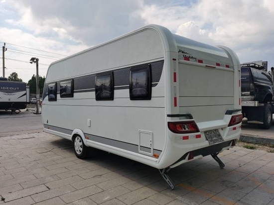德国原装进口Hobby拖挂式房车主体以白色为主,两侧则是以银色作为推拉把手和底部的颜色,显得更加高档与时尚,中间窗户部分以黑色为主调突出了车辆前部的采光和通风。额头部分英文字母更是简洁明了的向人们展示它的品牌和传奇。