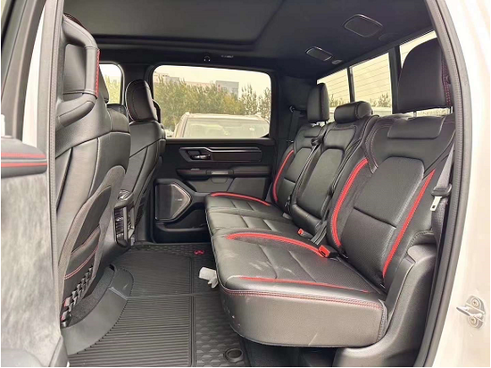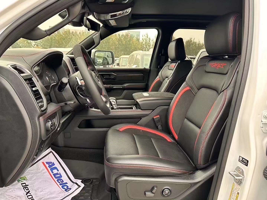 2022款道奇公羊霸王龙TRX做工则完全摆脱了美式的粗糙感,边缘、接缝都处理的很精细,真皮座椅各自独立,配有加热、按摩等舒适功能,每个座椅独立配一个操控手柄,各项功能由乘坐者自己控制。道奇公羊皮卡车型全部座椅均采用真皮包裹,前排还配备了十分实用的运动座椅。