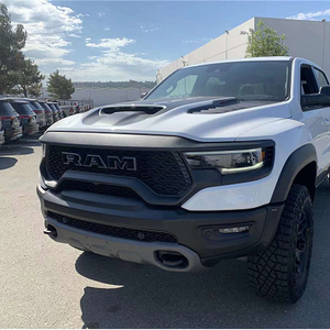 2022款道奇公羊霸王龙TRX家族高大威猛的造型设计,同时细节部分融入了更多高性能元素,包括经过黑化处理的前格栅,引擎盖两侧的黑色进气口,以及为了容纳巨大的机械增压器而设计的通风口等等。此外,新车还配备了视觉冲击力更强的黑色轮眉和外露式的拖车钩,看上去十分霸气。