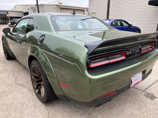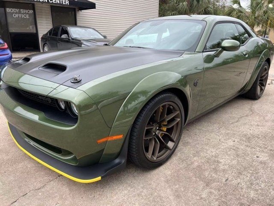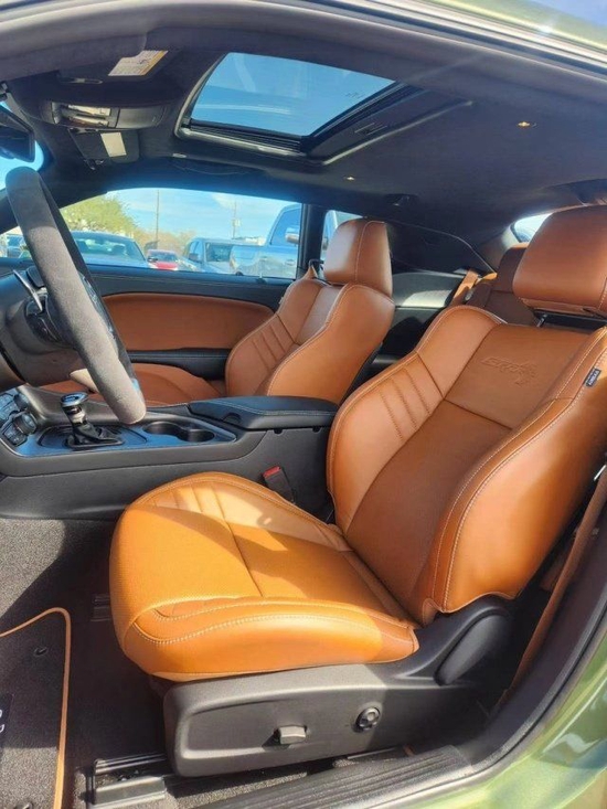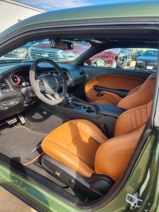 22款美规道奇地狱猫-越狱版SRT HELLCAT JAILBREAK颜色:绿/棕配置:天窗,F8绿车身,棕色恶魔座椅,棕色安全带,恶魔棕色地毯垫,3.09后桥比,缎黑性能扰流板,黑色Mopar引擎盖锁套装,绒面顶棚,缎面黑色引擎盖,恶魔黄铜轮毂,黄色卡钳,钢猴外部徽章,铜编织碳纤维装饰,Alcantara方向盘带红色LED标识,20*11恶魔黄铜轮毂。*SRT地狱猫越狱27D包(SRT动力冷却机,220MPH速度指针,高性能发动机控制器,宽体轮眉,宽体版悬挂,越狱版徽章)。*驾驶员便利包(并道辅助 同色后视镜 电动折叠加热后视镜 高亮大灯)。*拉古纳皮革包(拉古纳皮革与Hellcat标志,拉古纳皮革门饰板)。*哈曼/卡顿音响包(harman/kardon GreenEdge 功放,harman/kardon 18 扬声器音响系统,后备箱低音炮,环绕立体声)生产日期:2022-12
