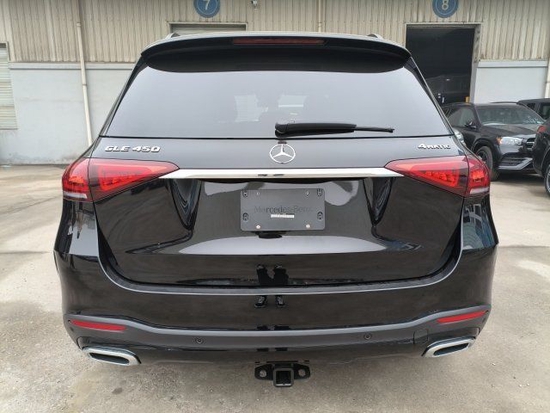 22款奔驰GLE450车尾部分,进一步外扩的后轮拱,让车尾形成上窄下宽的轮廓,整体感觉更加敦实运动。车尾同时融入了新一代奔驰家族的主流风格, 创新设计的尾灯造型变得修长锐利,内部三角状LED灯带具有非常高的辨识度。双边共两出的排气和银色护板,拉长了车尾的视觉宽度,同时也为车辆增加更多运动气息。