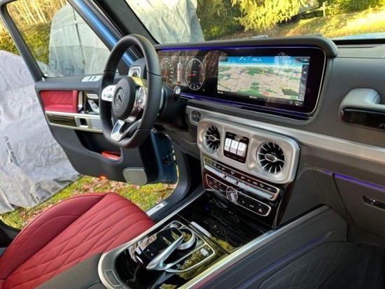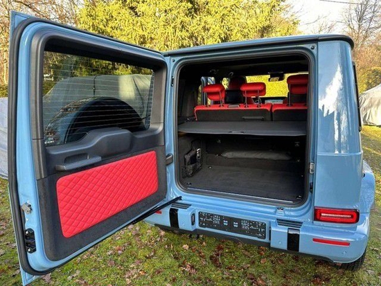 。23款G400D 瓷器蓝/红色菱形格 配置:红色菱形格皮内饰包,后排娱乐,变道辅助,驾驶员辅助包,盲点辅助,ACC自适应巡航,柏林之声音响,后备箱行李隔离网,64色氛围灯,100升大油箱,多光束LED大灯,暗夜包升级包,隐私玻璃,360环影停车包,多仿型座椅舒适包(通风,按摩),AMG运动包,20寸AMG熏黑轮,不锈钢外观包,红色安全带,AMG脚垫,前后奔驰哑光黑涂漆,奔驰防盗包,黑色超细纤维内衬顶,无框车内后视镜,真皮面板仪皮盘,后备箱隔离板