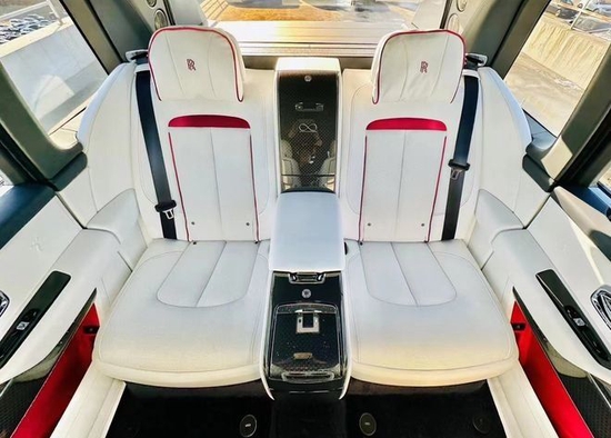 23款劳斯莱斯库里南BB版的座椅设计大胆又充满自信,彰显劳斯莱斯汽车的品质与工艺。座椅采用简洁而现代的马蹄铁图案,强调座椅的支撑力。座椅间固定的中央扶手台设有存放定制香槟酒具的酒柜和冷藏箱,电子控制的座椅角度,并带有按摩功能及座椅扶手加热功能。腿部支撑可电动伸展90°,为后排乘客带来极致舒适的体验。
