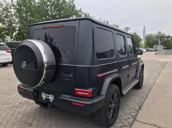 最新22款平行进口奔驰G550 (配置|询价)外观方面车头部份特换上了碳纤维材质的单横栅式水箱护罩,并在两侧进气孔下方则追加了LED昼型灯,展现出更为华丽的车头造型而引擎盖上 方追加了大面积轻量化碳纤维材质组件,并在两侧追加了同为碳纤材质的空力套件,搭配车身大型轮拱同样碳纤维材质的设定。