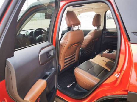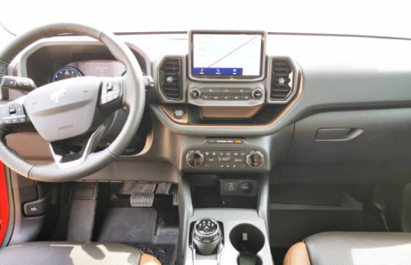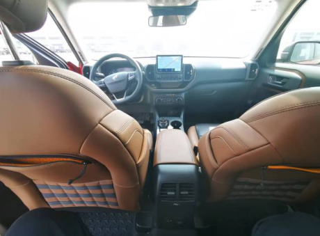 22款福特烈马Bronco 车内采用硬朗的设计风格,中控台设计主次分明且有层次感,用料也厚实,多功能方向盘造型运动,中控屏幕采用内嵌式的设计增添了车内的时尚感,按键布局合理,档把设计精致, 座椅宽大厚实,空间宽敞,实用性强。
