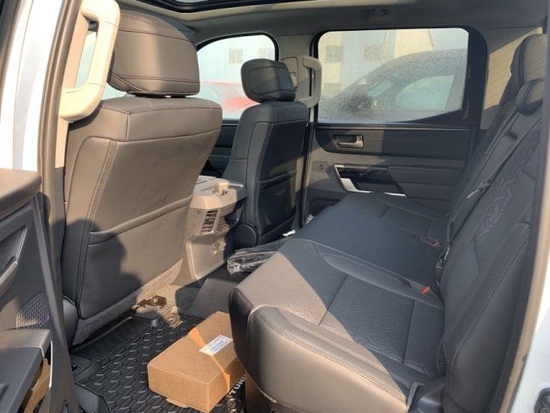 2022款丰田坦途车内乘坐、后排座椅宽大,足以满足身高195cm的贵宾,第二排座椅可以完全折叠收起,为乘客提供更宽敞的腿部空间,已经达到了中大型车的水平,完全可以满足舒适乘坐的需求,部分特殊的装载给您的路途更添信心。