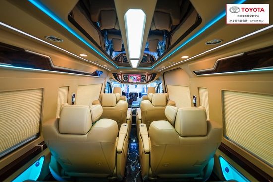 配置:座椅调节,扶手,杯架,高级绒座椅,侧车窗,头顶部空调出风口,加装:4个航空座椅,桃木内饰,吸顶DVD 木地板座椅通风按摩。丰田海狮改装商务车为了提供给我们舒适的乘车环境,车内采用最舒适的音响设备和,丰田海狮改装商务车为我们在旅行中提供了优质音乐和旋律的需要,再加上车内增加了隔音设备,对回声的处理,丰田海狮改装商务车,更是为我们提供了最舒适的环境,宽敞的空间优雅的内饰