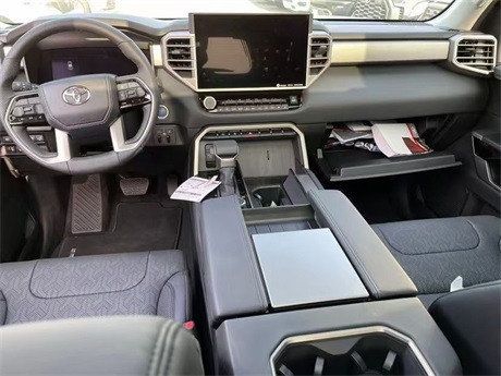 23款丰田红杉车内的科技氛围是通过12.3英寸的全液晶仪表盘和14英寸的中控屏来实现的,中控屏两侧的空调出风口,虽然没有采用时下流行的贯通式设计,但在中控台上对称排列也别有一番风味。