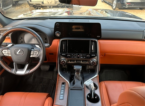 2023款雷克萨斯LX600采用了对称式中控台设计,继续提供液晶仪表和HUD抬头显示等配置,并首次加入双屏显示器,该中控屏由12.3英寸的上屏和7英寸的下屏组成。另外,车辆启动按钮被设置在了中控屏一侧,并首次配备了指纹识别。内饰采用了家族式最新的设计风格,整体设计十分的简洁大气,采用了上下双中控屏幕的设计,进一步提升了整车的科技感。