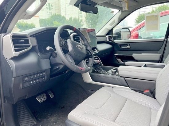 配置:LTD标配:3.5L双涡轮增压V6发动机、10速变速器、全景天窗、14寸大屏、电动垂直后窗、电动折叠外后视镜、全树脂后抖、多线悬挂、Apple CarPlayTM和Android AutoTM、8向电动座椅、真皮座椅、前排座椅加热通风、20寸轮毂、400瓦(120v)后床外接电源、自动远光灯、带转向辅助的车道偏离警报、雷侧、行人检测、自行车检测、夜间行人检测的预碰撞系统、无线充电、胎压检测系统、LED大灯 TRD off road越野包:可拆卸前扰流板、TRD加热方向盘、多地形视图监视器、TRD前进气格删、多地形选择模式、DAC(下坡辅助控制)、Crawl Control (CRAWL;蠕行模式)、后差速锁、TRD越野减震器。