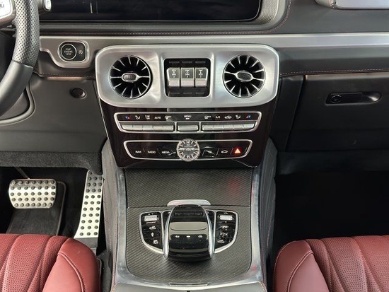 23款奔驰G63AMG内饰即豪华又充满科技感、中控台多处均采用碳纤维材质覆盖带彩色TFT显示屏的AMG仪表盘、AMG主菜单和单独的挡位显示器以及采用白色照明的AMG门槛。双12.3英寸贯穿式的显示屏营造出了浓郁的科技氛围。当然了,经典的三把锁按键自然不会缺席、并且设置在中控台最为显眼的位置。