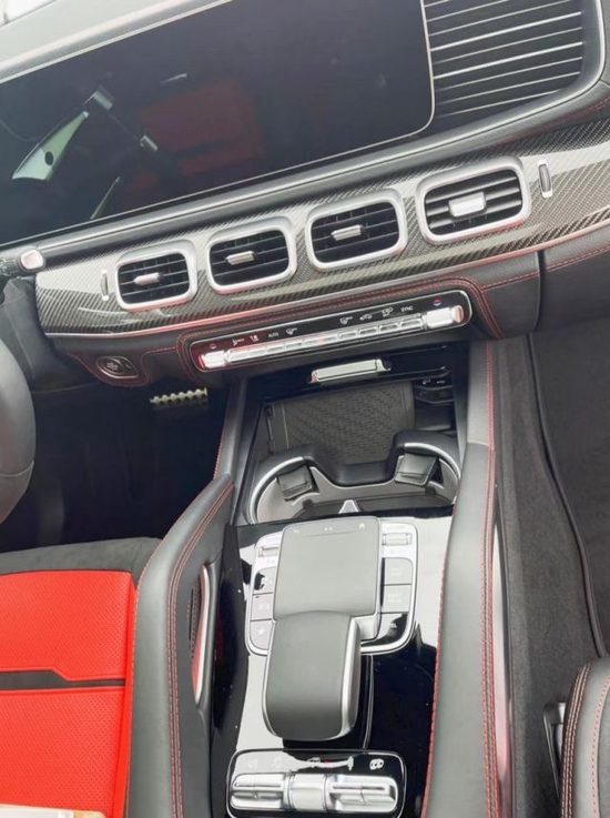 奔驰GLE53内饰依旧延续了运动型AMG的主题,乍一看,你可能会被众多的红色缝线所震撼,它隶属于新车的一个可选配置包,不仅是缝线,包括方向盘上也增加了红色的中心标记(就像你在一些赛车中看到的那样)和红色安全带等等。另外,它的内饰还采用了大量的碳纤维材料,让它进一步散发出浓郁的运动与舒适感。