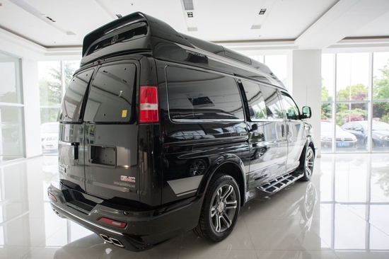 GMC商务车首领级商务车秉承了美国奢华房车的一贯风格,外形高大威猛,辅以大型双对拉式中门及高顶规划,并且选用了很多镀铬饰件,能够说只需置身于该车中,到处都能感受到其所显示的君临天下的霸气。