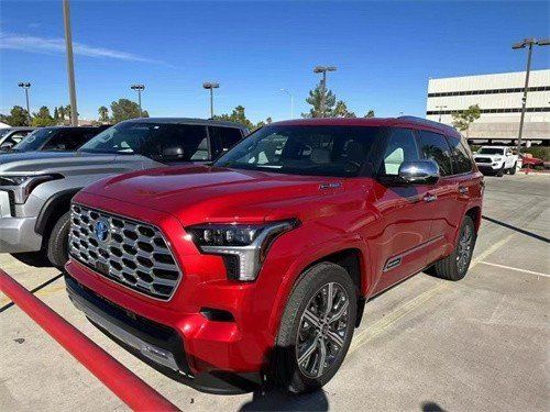 23款丰田红杉来了 与新款丰田兰德酷路泽、丰田坦途同平台生产,更换了全新更加硬朗犀利的外观,更加霸气。相比老款,新款车型线条更加犀利,少了老款那种圆润,多了美式车的力量感,全新六边形中网加大块状多棱角的LED大灯,整个前脸高大霸气;没有过多线条修饰的车侧以及车尾,简约粗犷。