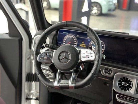 23款奔驰G63AMG内饰即豪华又充满科技感、中控台多处均采用碳纤维材质覆盖带彩色TFT显示屏的AMG仪表盘、AMG主菜单和单独的挡位显示器以及采用白色照明的AMG门槛。双12.3英寸贯穿式的显示屏营造出了浓郁的科技氛围。当然了,经典的三把锁按键自然不会缺席、并且设置在中控台最为显眼的位置。