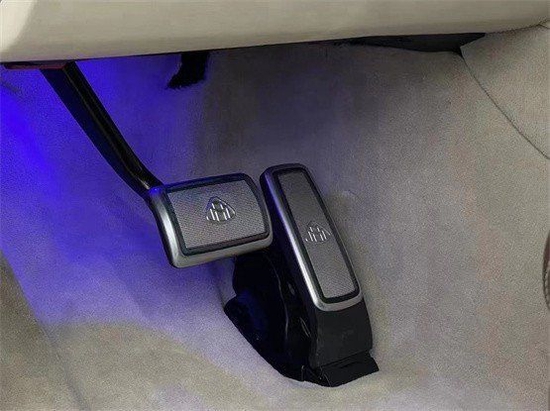 接下里就是更换电动踏板,对于GLS这样的SUV来说,如果家里有老人孩子的话原车的固定踏板会非常不方便,所以还是有必要更换电动踏板的,而且原车都留有安装位置无需后期打孔,打开车门,伸缩出来的是一个迈巴赫1:1的电动踏板,钢琴烤漆的材质,后排的宽度是非常宽的,因为迈巴赫这台车的尊贵是给到后排的。
