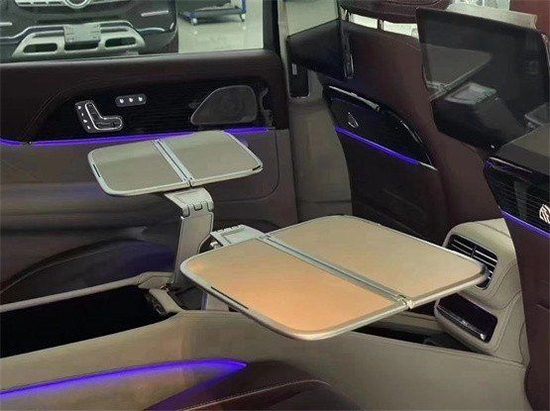 22款奔驰GLS450改装迈巴赫后排升级双独立行政座椅,加配中央的马鞍扶手,迈巴赫最享受的就是后排了。马鞍还配备了手机无线充、冷热杯、小桌板、冰箱,办公商务都能完成。