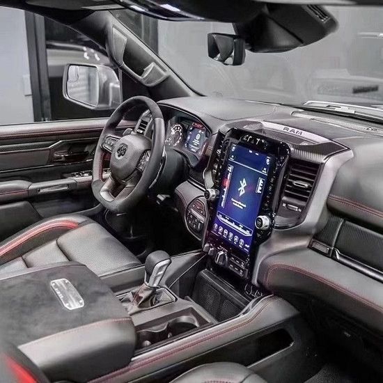 道奇霸王龙在内饰部分进一步强化了其高性能版本的形象,中控台和座椅随处可见的TRX标识便是最好的例证。同时,作为道奇家族的旗舰车型,新车还配备了12英寸竖置中控屏幕,除了支持蓝牙、导航和车载Wi-Fi等常见功能,还支持Apple CarPlay和Android Auto手机映射。