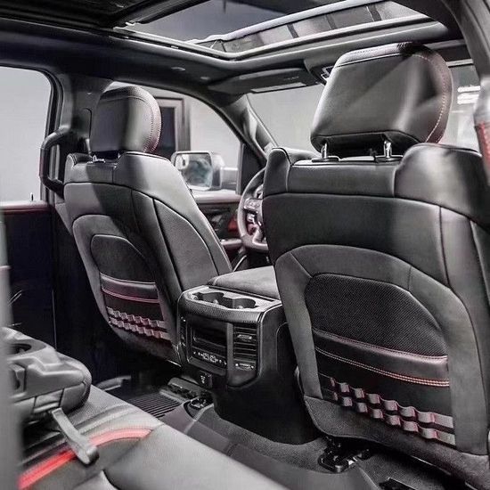 2022款道奇霸王龙做工则完全摆脱了美式的粗糙感,边缘、接缝都处理的很精细。真皮座椅各自独立,配有加热、按摩等舒适功能,每个座椅独立配一个操控手柄,各项功能由乘坐者自己控制。道奇公羊皮卡车型全部座椅均采用真皮包裹,前排还配备了十分实用的运动座椅。