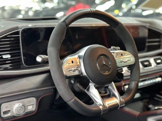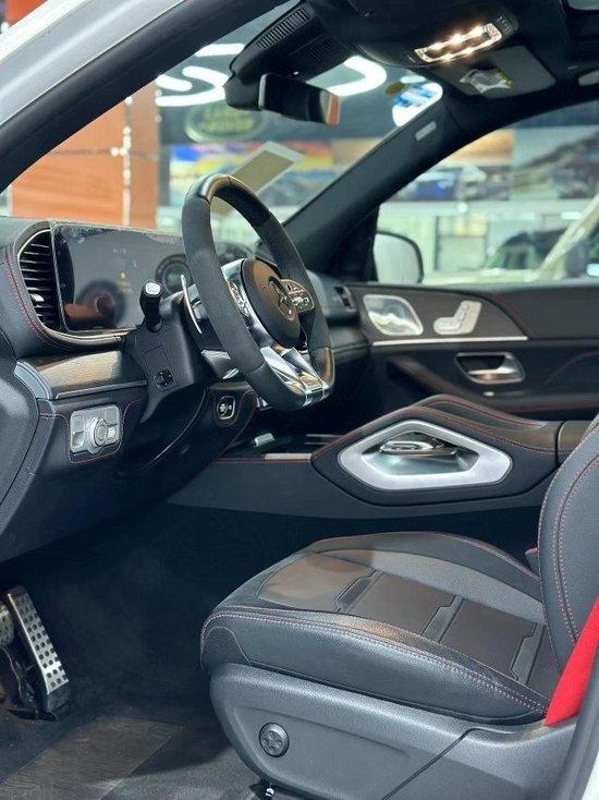 23款奔驰GLE53AMG配置:21寸双5幅轮毂、5座、360环影、全景天窗、电尾门、抬显、柏林之声音响、温控杯架、无线充电、私密玻璃、LED大灯、翻毛皮双拼方向盘、四区空调。
