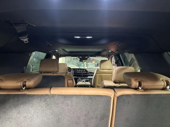 在空间方面,凯雷德拥有超过3米长的轴距和独立的后悬架,第三排腿部空间可以提高 40%。同时全车标配真皮内饰、12 向电动调节前排座椅、第一排和第二排加热座椅功能、全景天窗和 36 个扬声器的 AKG Studio Reference 音响系统等等,提升了你在长短途通勤中的乐趣。后备箱可以提供722-3426升的收纳空间,基本满足日常使用需求。