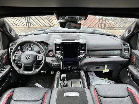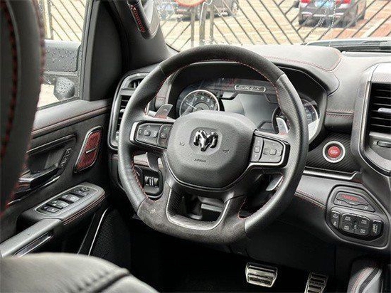新款道奇公羊TRX,又叫霸王龙,性能秒杀猛禽 (配置|询价)(配置|询价),越野高性能皮卡,搭载6.2L V8机械增压发动机,最大功率可达702马力。看上去十分霸气。新车在内饰部分进一步强化了其高性能版本的形象,中控台和座椅随处可见的TRX标识便是最好的例证。同时,作为道奇家族的旗舰车型,新车还配备了12英寸竖置中控屏幕,除了支持蓝牙、导航和车载Wi-Fi等常见功能,还支持Apple CarPlay和Android Auto手机映射。
