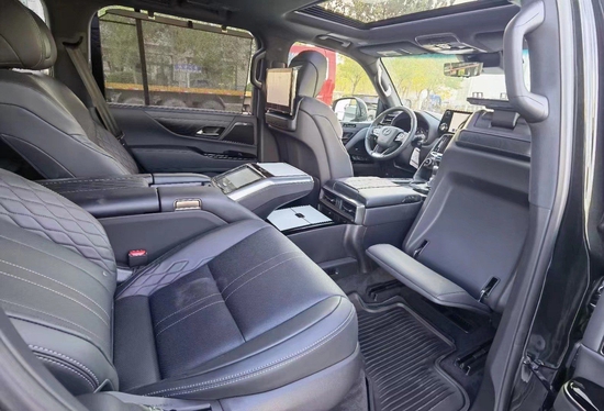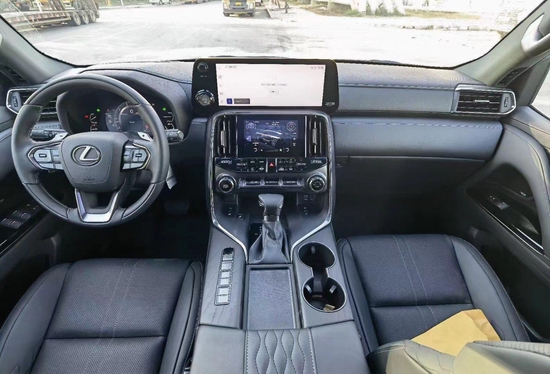 2023款雷克萨斯LX600 内饰方面,配置多功能方向盘,中控台,车门内侧均由真皮及珍贵实木内饰包裹,豪华感十足,同时车内的数字化氛围也得到了提升,中控台双屏设计。悬浮式的12.3英寸的液晶显示器与下方的七英寸液晶显示器相呼应,同时为保障优秀的越野性能,保留了部分实体按键和机械结构。