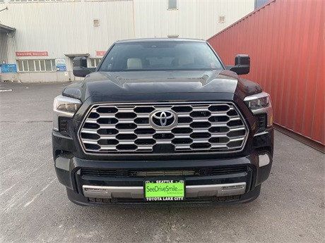 2023款丰田红杉前脸看起来和坦途基本一样,特别是大尺寸的横向进气格栅以及两侧的L形大灯组,不过格栅和下包围并未像坦途那样是相连的,但却显得车头更加霸气,而且还增加了些层次感。