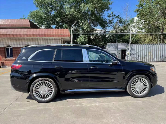 奔驰迈巴赫GLS (配置|询价)600车身侧面非常霸气硬朗,双色拼接的车身显得外观更加奢华。车顶配有银色镀铬行李架,并且车窗周围搭配有镀铬饰条的装饰。迈巴赫GLS (配置|询价)600的轮毂采用的是超大尺寸的密辐条样式设计,使得整个侧面看上去更加庄重奢华。并且在后车窗的后方还设置有非常标致的迈巴赫logo,凸显了这款汽车非常独特的身份。