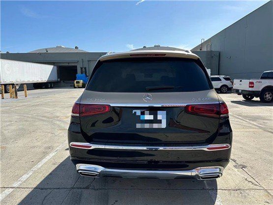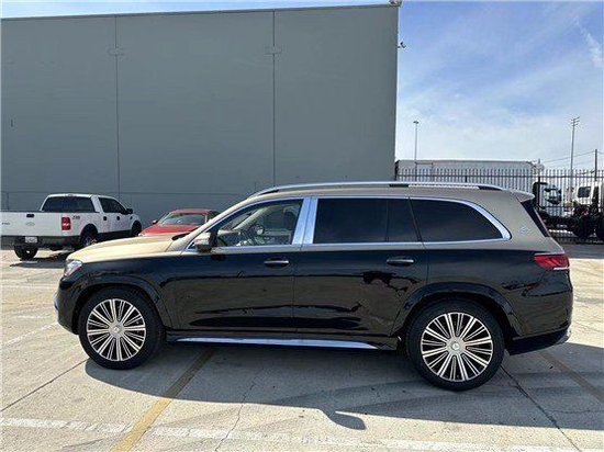 迈巴赫GLS (配置|询价)600车身侧面,新车采用双色车漆喷涂,配备23英寸多幅熏黑轮毂,D柱之上镶嵌迈巴赫专属LOGO,同时车窗周边的镀铬装饰也凸显了尊贵的身份,整体的车身设计简洁而干练。车尾也采用了大量的镀铬装饰,GLS 600和Maybach英文标识所使用的字体样式相比以往车型质感更强。