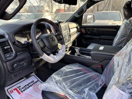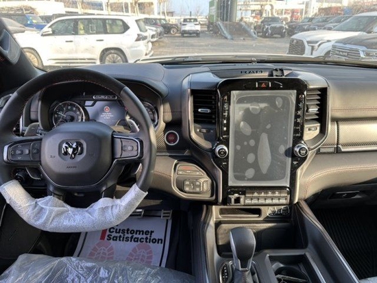 2022款道奇公羊霸王龙在内部设计上还是延续了美式那种比较粗犷的风格,规整的中控台设计看上去比较死板,但丰富的配置会让你不由得为其称赞,中控台的设计简洁硬派,符合公羊的气质,仪表盘底边有花纹,则更加凸显了这款车的文雅性,软性材质的仪表台设计,摸上去手感非常舒服,并无些许生硬之处。